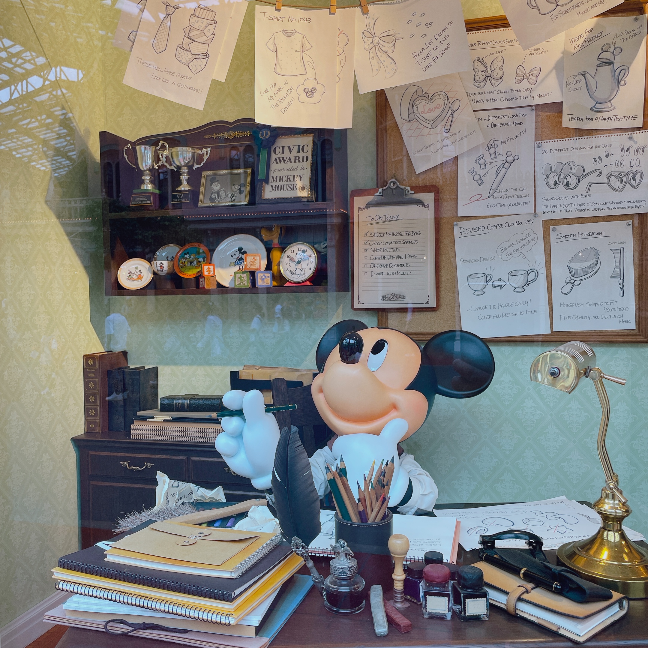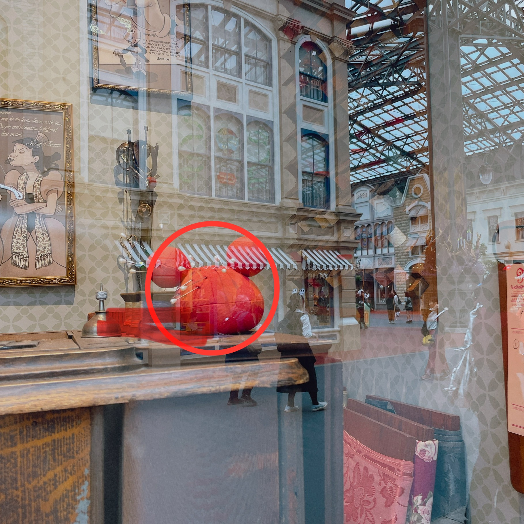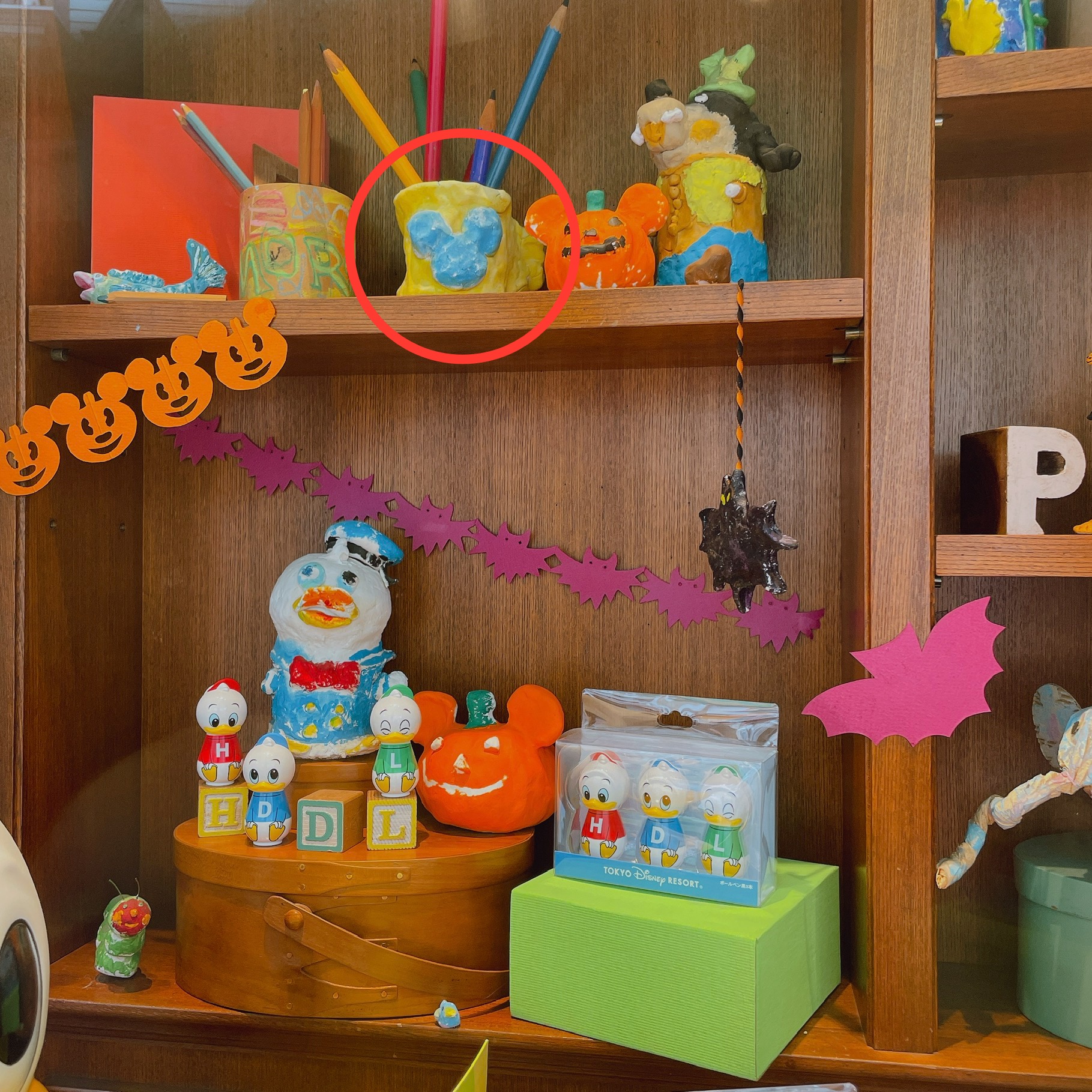 ショーウインドウ 鉛筆立ての隠れミッキー (ハロウィン中はカボチャミッキーもいるよ) | ![]() 難易度: | 備考:ヒューイ・デューイ・ルーイがいるショーウインドウを探してみよう! |