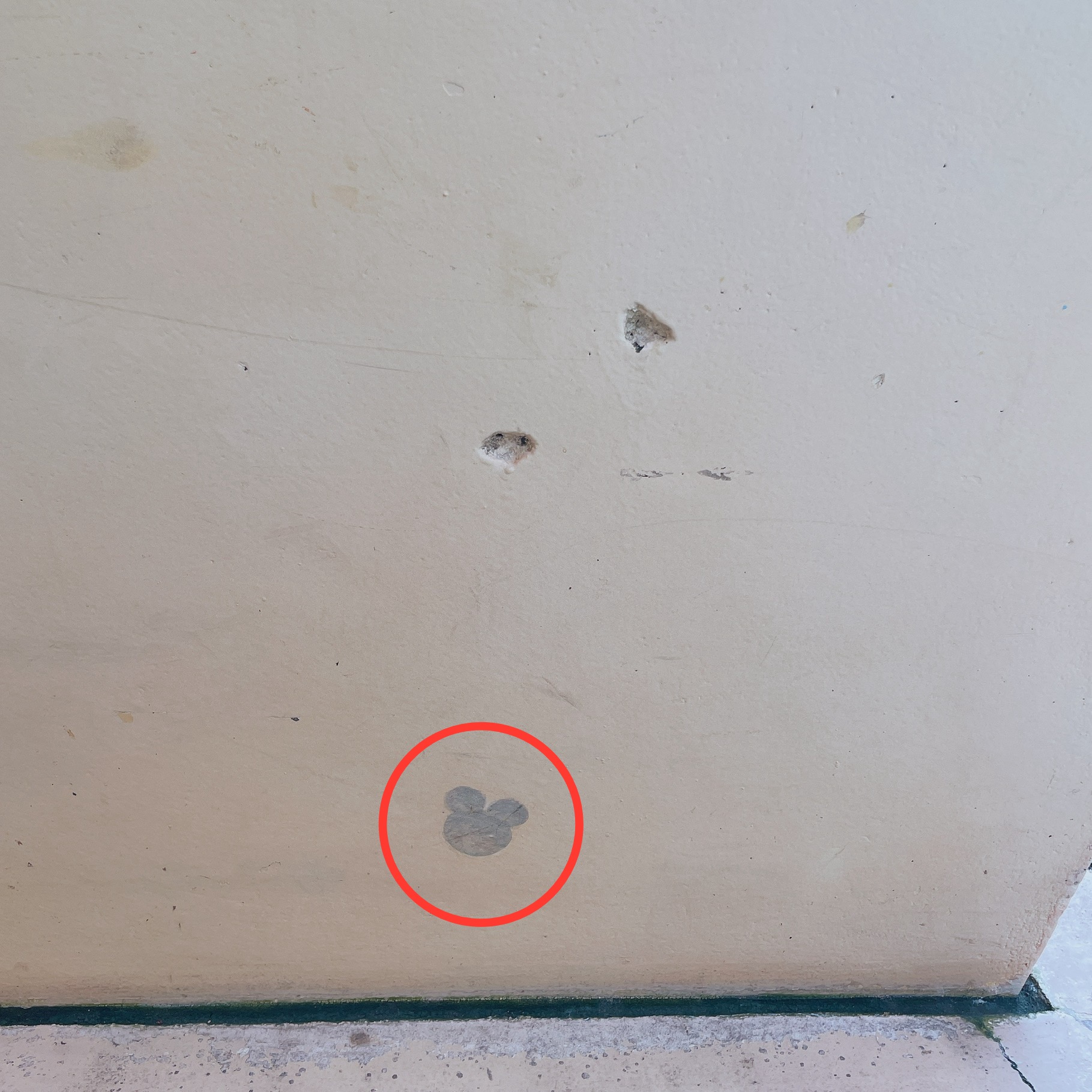 よくあるのは、3つの丸で出来たミッキーですが、横向きのシンボルだったり、全体像だったり、場所によっても異なります。