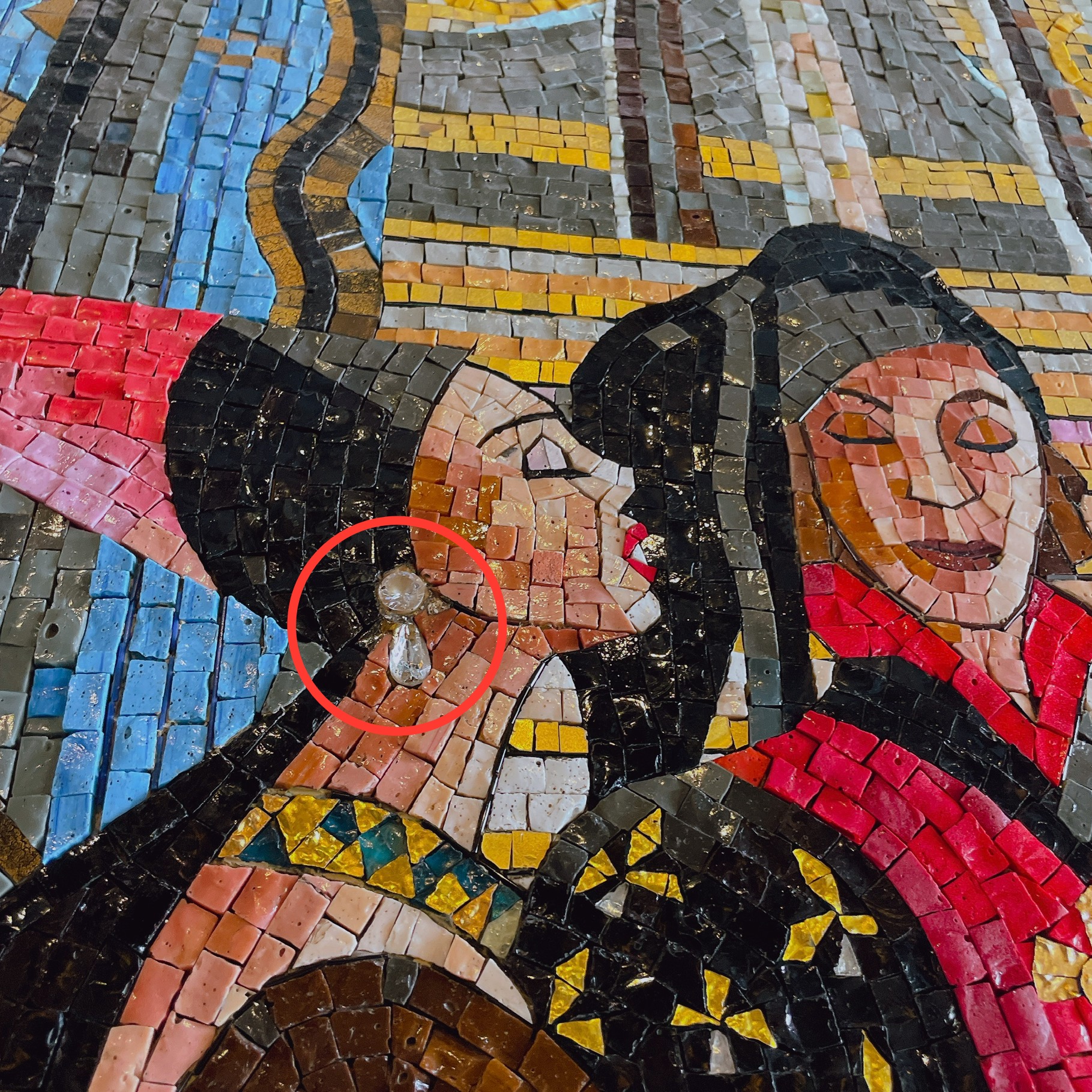 シンデレラ城 本物の宝石を使ったイヤリング | ![]() 難易度: | 備考:シンデレラ城の壁画には本物の宝石を使った(ダイヤモンド?水晶??)イヤリングがあり、見つけた人は幸せになれるというジンクスが昔からあります!ぜひ探してみてね! |