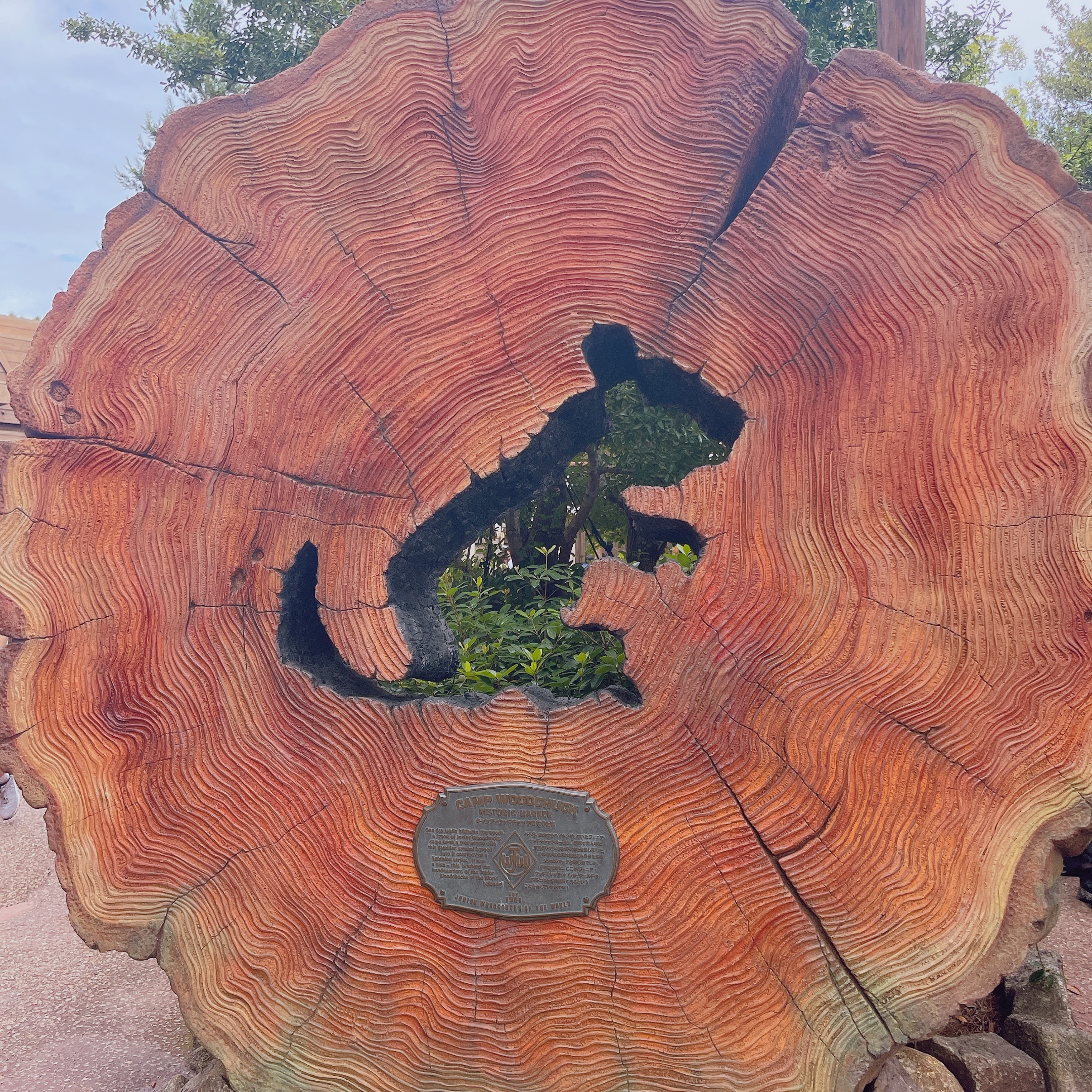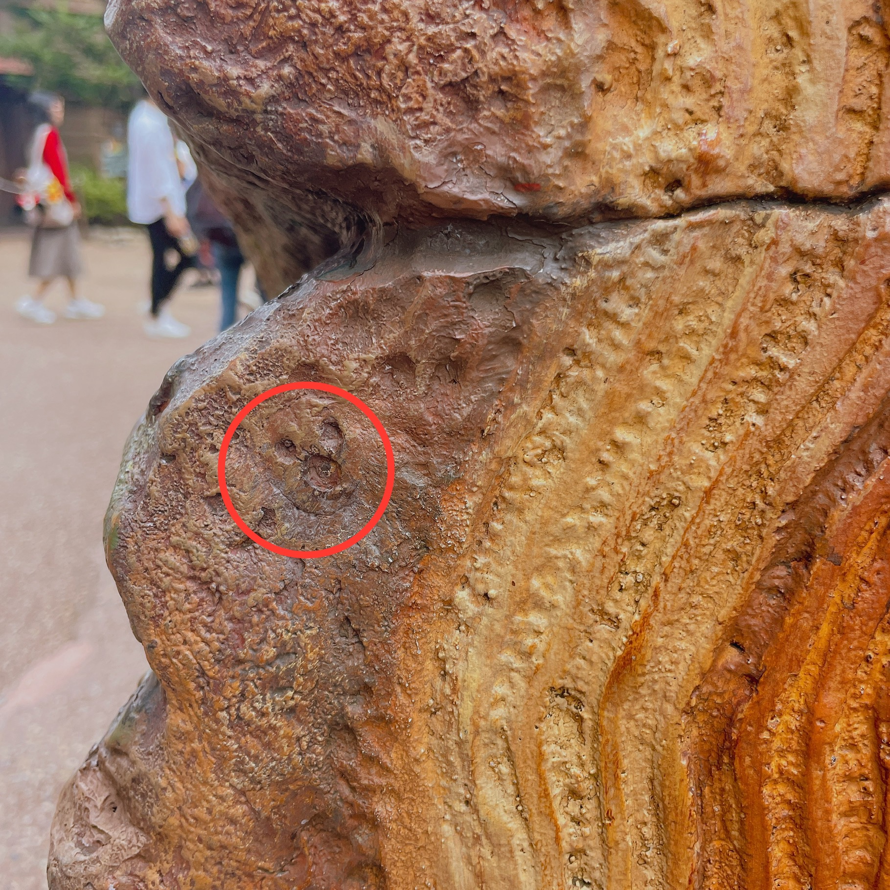 トムソーヤ島いかだ乗り場前 丸太の隠れミッキー(激ムズ!) | ![]() 難易度: | ![]() 備考:大きなリスの丸太の模様に注目! 思った以上に小さく、薄いです! 場所を知っていても探すのに5分かかりました笑 (ヒントはリスのしっぽの方) |