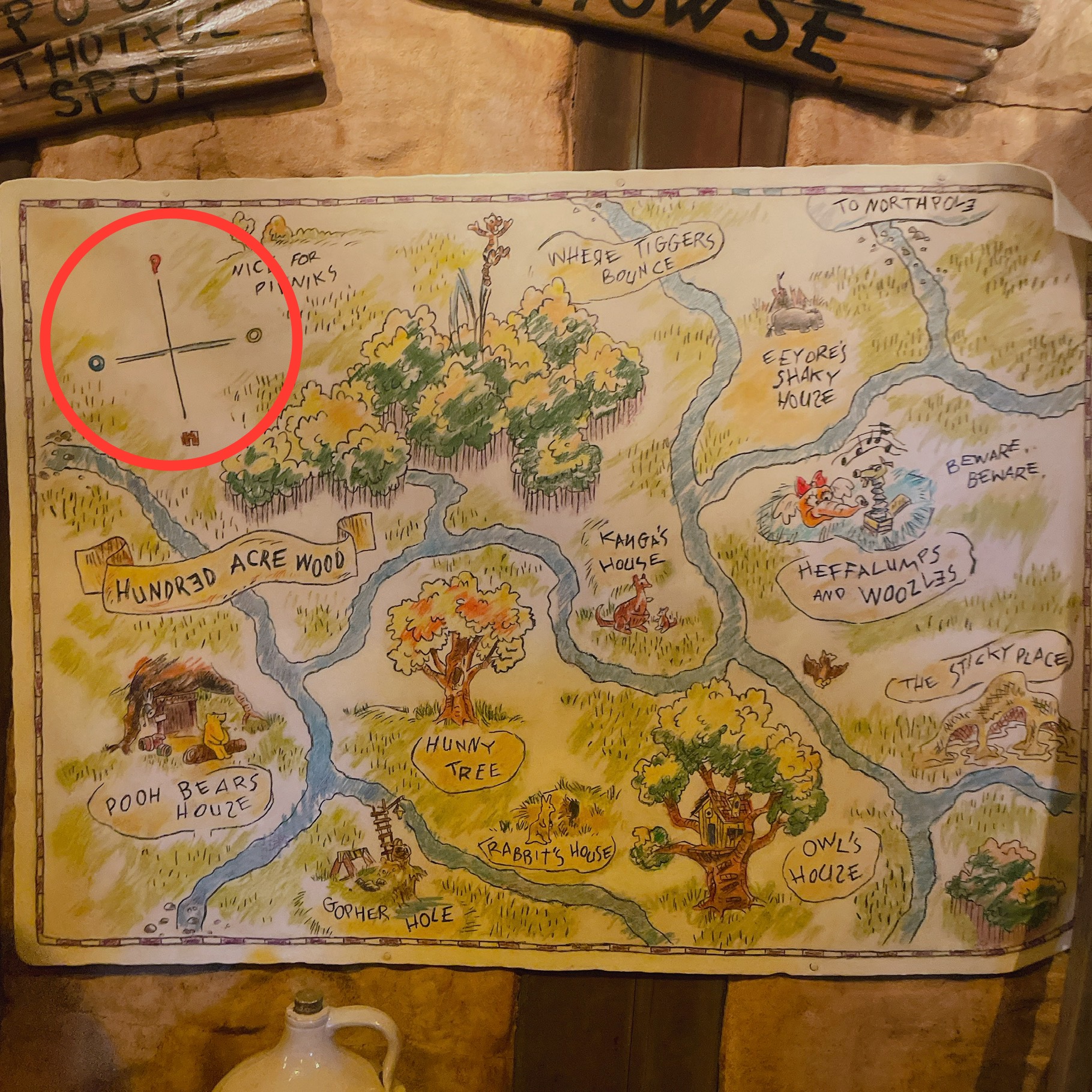 プーさんのハニーハント内の地図は、方角を示す印が「POOH」になっています。