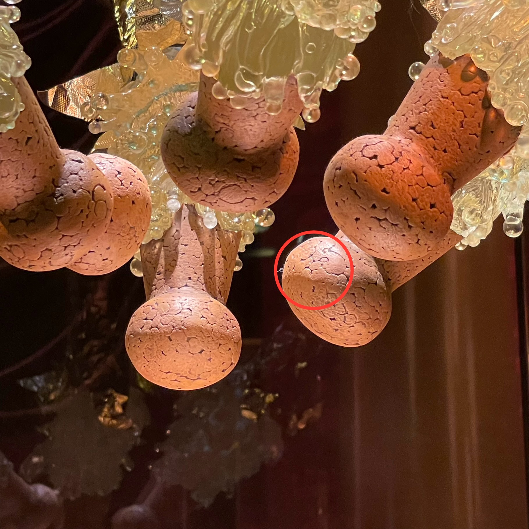待合室 美女と野獣のオブジェ コルクの模様隠れミッキー | ![]() 難易度: | 備考:コルクの模様に注目! これは以前から有名な隠れミッキー。私はこれかな?と思ったのですが、もっとハッキリとわかるものもあるらしい^^; |