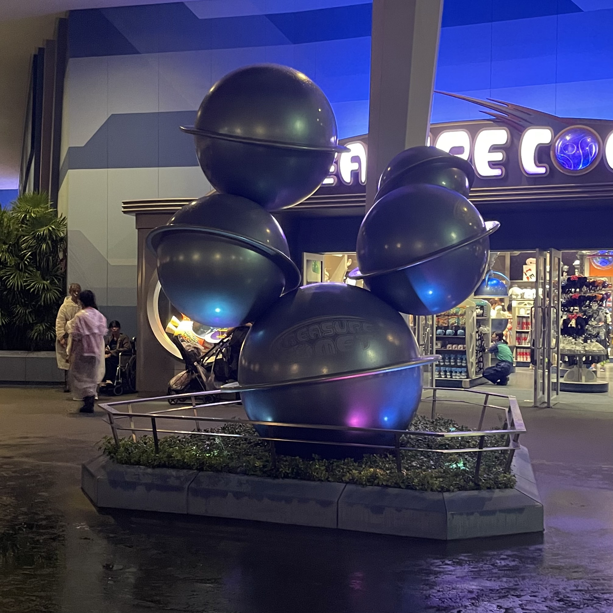 外のオブジェをしっかりと見たことはありますか?とても大きな隠れミッキーが見つかりますよ!