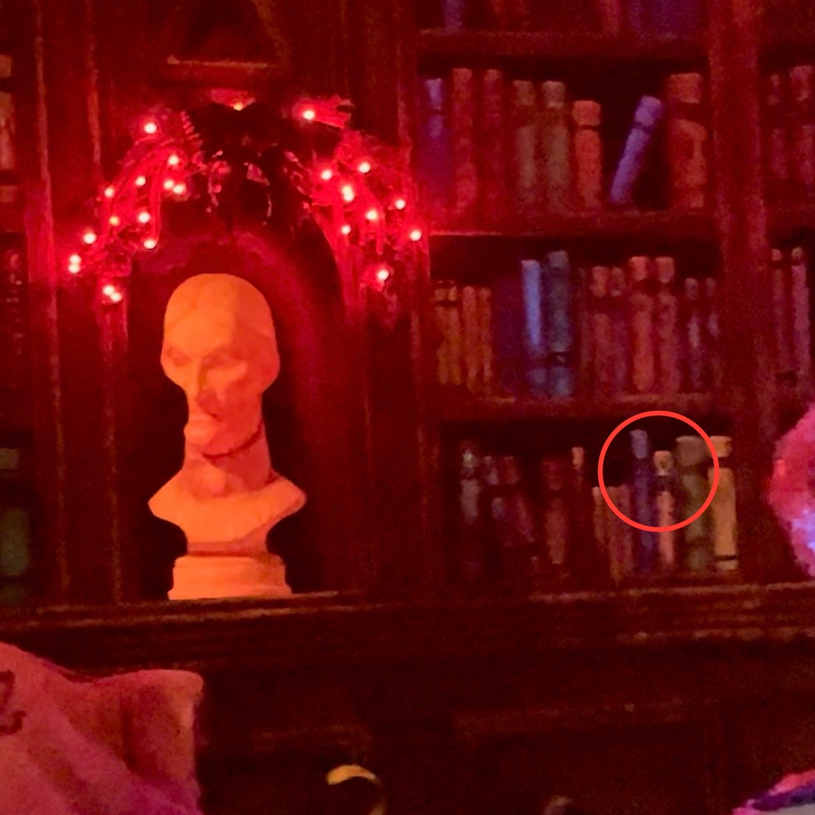 書斎 本のマーク隠れミッキー(激ムズ!) | ![]() 難易度: | 備考:書斎の石像、右から三番目の石像がいる右の本棚、一番下の段 どんどん進んでしまいますし、目をこらさないと良くわかりません。激ムズ! |