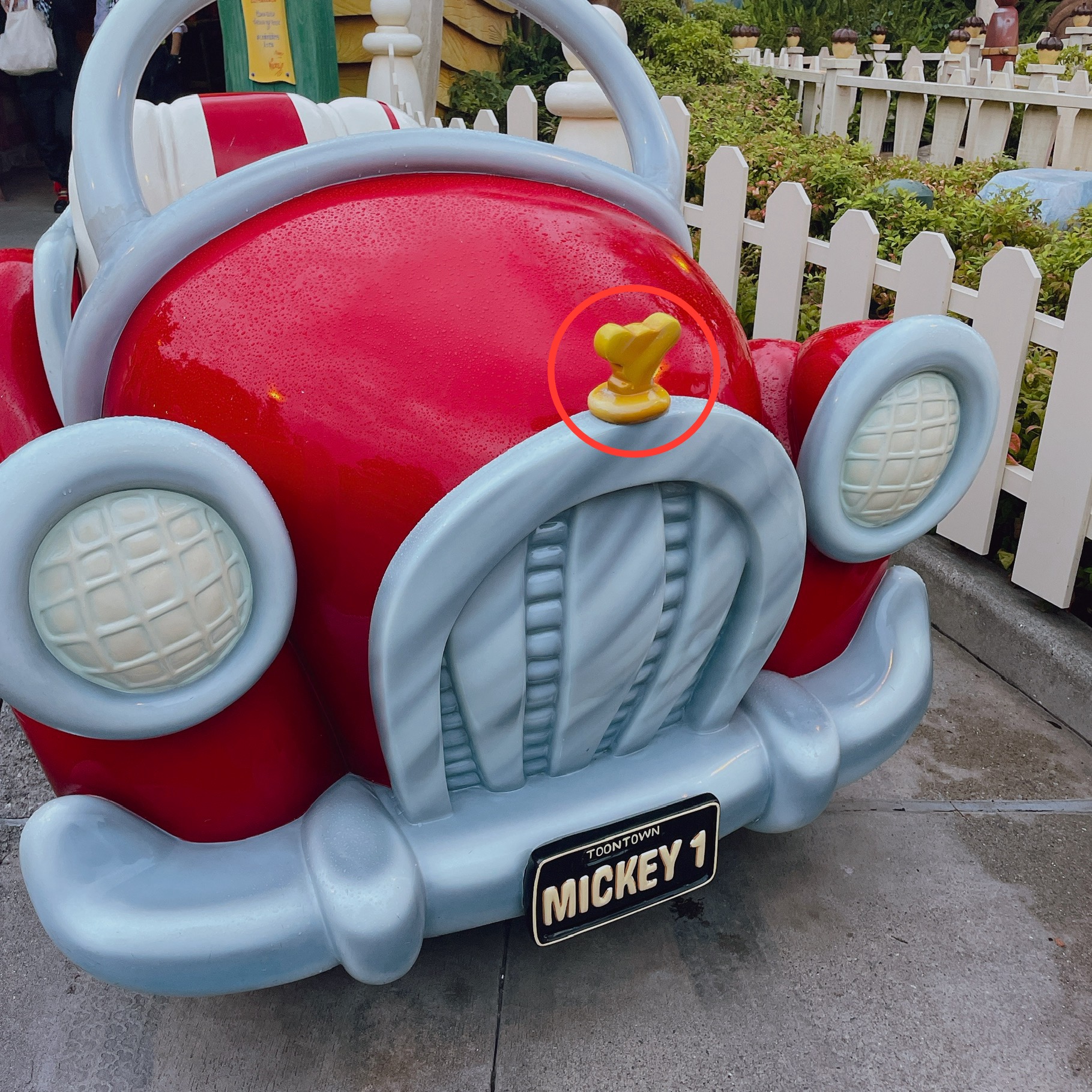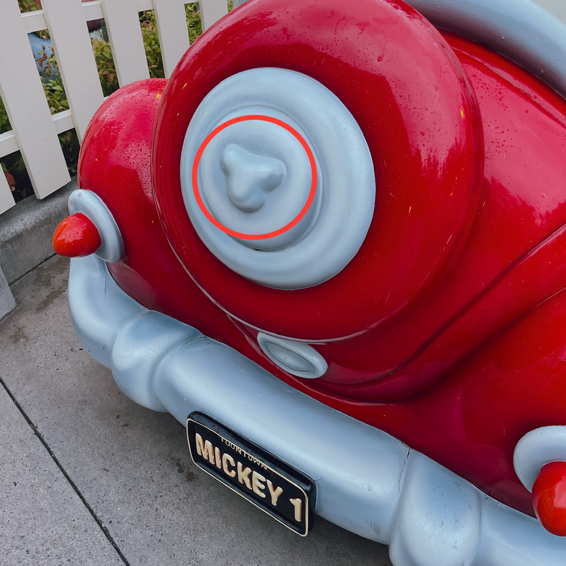 ミッキーの家とミートミッキー出口付近・屋外 車のエンブレム | ![]() 難易度: | 備考:車のエンブレムに注目! |