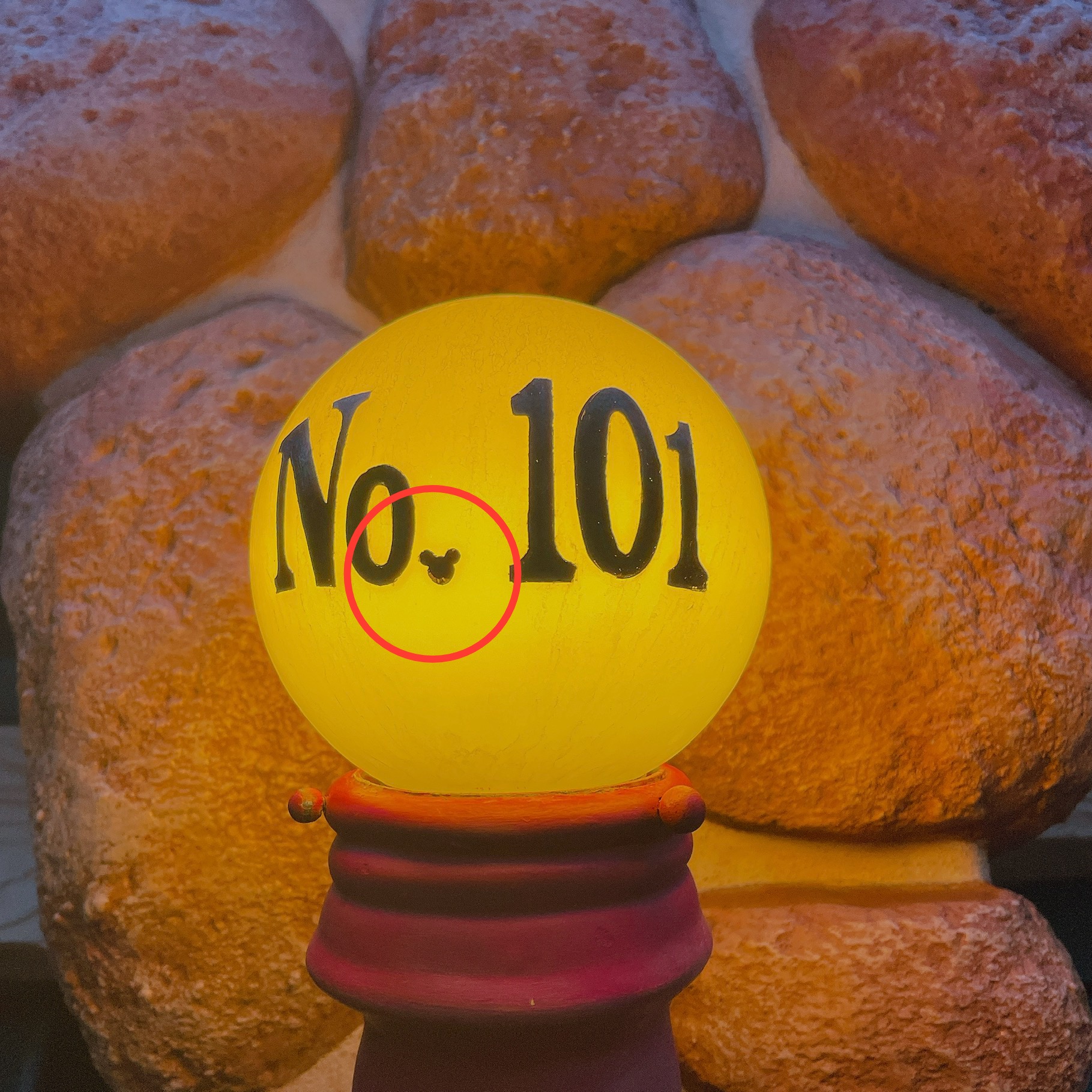 101ワンちゃん消防署前 ライトの隠れミッキー | ![]() 難易度: | ![]() 備考:左側のライトに注目! |