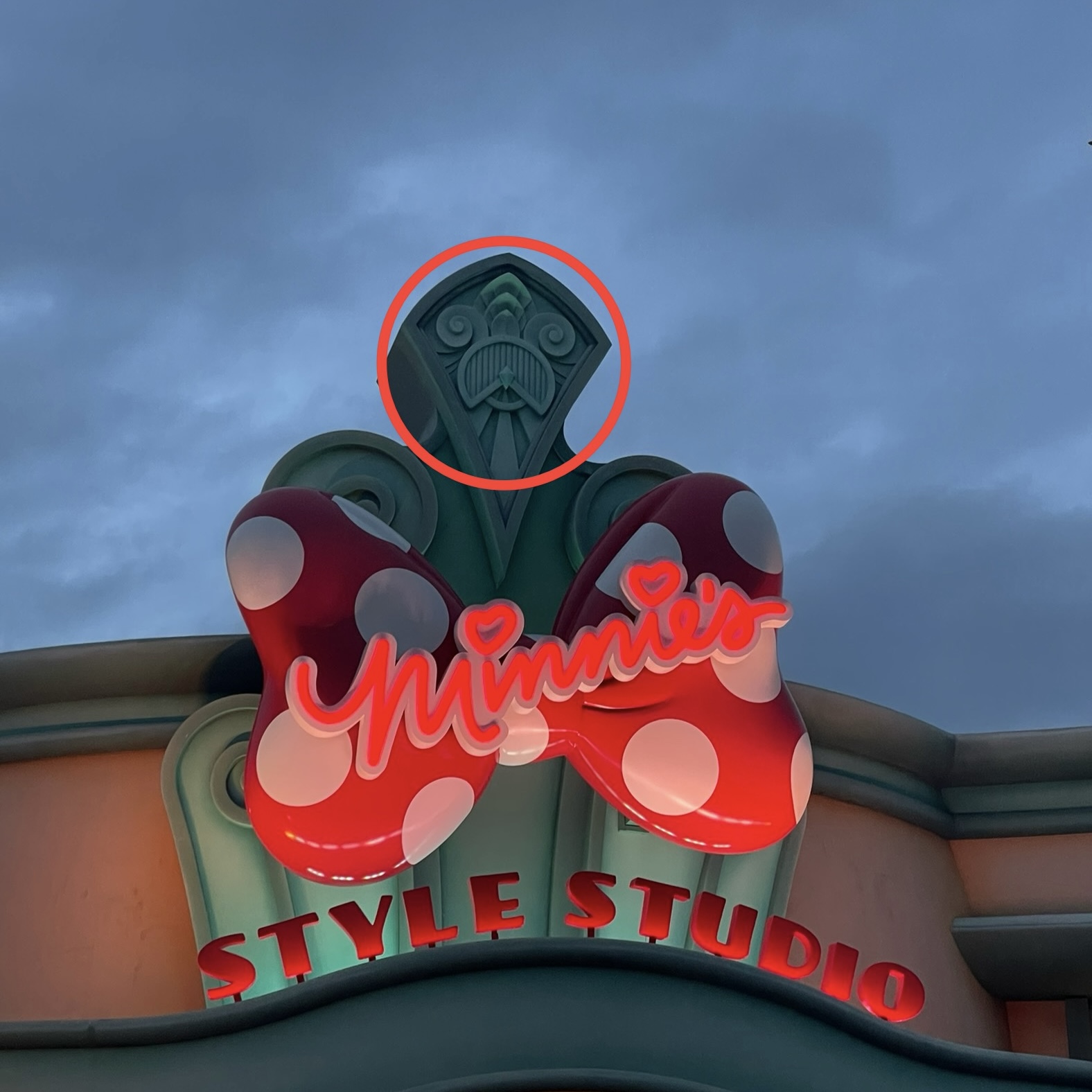 ミニーのスタイルスタジオ 看板 看板の隠れミッキー | ![]() 難易度: | 備考:夜だったので、暗くてすみません^^; |